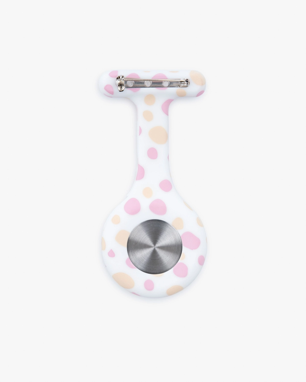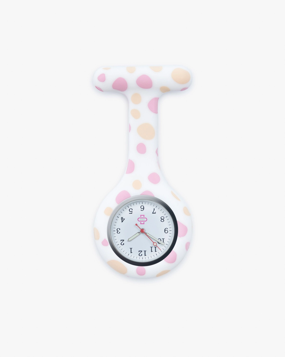 Sykepleierklokken festes enkelt på ønsket plagg med hjelp av en sikkerhetsnål. Klokkens skall er i silikon, noe som gjør det til en perfekt og hygenisk alternativ for deg som jobber i helsetjenesten,